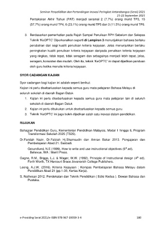 2. Kajian ini perlu dibukukan untuk disebarluaskan kepada semua guru.