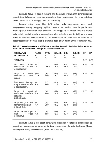 Jadual 5: Kesedaran metakognitif dimensi regulasi kognisi: Penilaian dalam kalangan