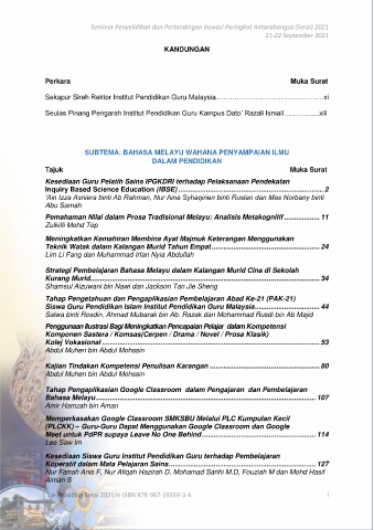 Pemahaman Nilai dalam Prosa Tradisional Melayu: Analisis Metakognitif .................. 11