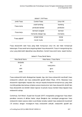 Jadual 1: Inti Frasa