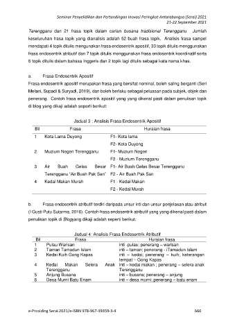 mendapati 4 topik ditulis mengunakan frasa endosentrik apositif, 33 topik ditulis menggunakan
