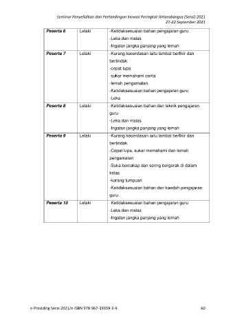 Peserta 7 Lelaki -Kurang kecerdasan iaitu lambat berfikir dan