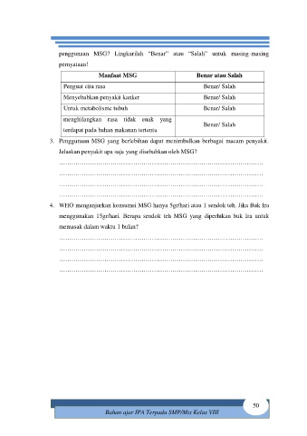 penggunaan MSG? Lingkarilah “Benar” atau “Salah” untuk masing-masing