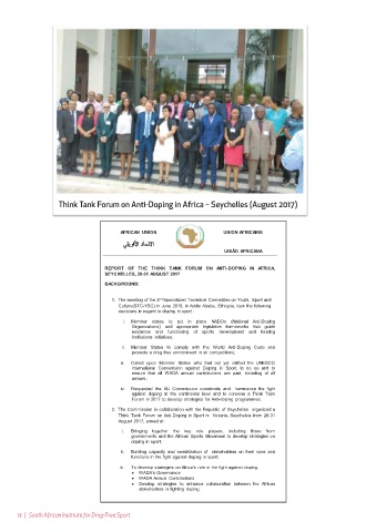 REPORT OF THE THINK TANK FORUM ON ANTI-DOPING IN AFRICA,