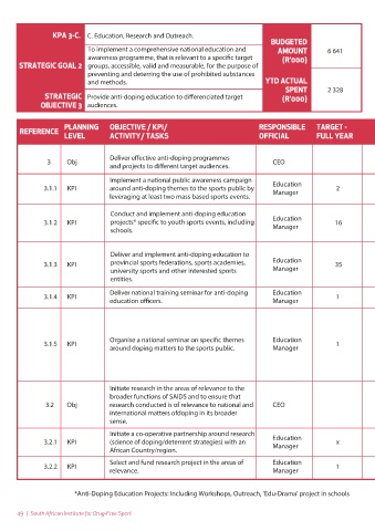 STRATEGIC Provide anti-doping education to dif erenciated target (R’000)