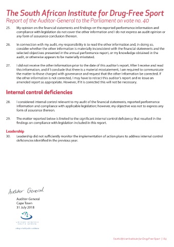 63 | South African Institute for Drug-Free Sport South African Institute for Drug-Free Sport | 64