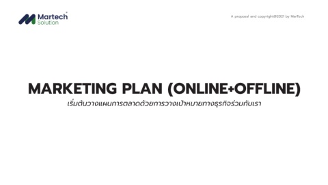A proposal and copyright@2021 by MarTech MARKETING PLAN (ONLINE+OFFLINE) ่ เริมต้นวางแผนการตลาดด้วยการวางเป้าหมายทางธุรกิจร่วมกับเรา