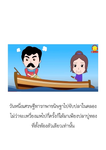 ึ่ ิ ี ั วนหนงเศรษฐทารกพาขนษฐาไปจบปลาในคลอง ั ็ ี่ ั้ ี่ ไมวาจะเหวยงแหไปกครงกไดมาเพยงปลาบทอง ี ู ั้ ั้ ี่ ทตงทองตวเดยวเทานน ี ั