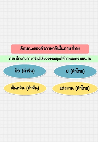 ลักษณะของคําภาษาจีนในภาษาไทย ภาษาไทยกับภาษาจีนมีเสียงวรรณยุกต์ที่กําหนดความหมาย บ๊อ (คําจีน) บ่ (คําไทย) ติ้นหงัน (คําจีน) แต่งงาน (คําไทย)