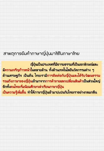 เป็นความรู้เพิ่มขึ้น ทําให้ภาษาญี่ปุ่นเข้ามาปะปนกับไทยเราอย่างกลมกลืน