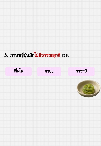 3. ภาษาญี่ปุ่นมักไม่มีวรรณยุกต์ เช่น กิโมโน ซาบะ วาซาบิ