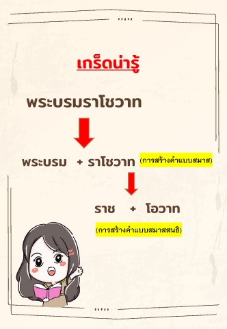 เกร็ดน่ารู้ พระบรมราโชวาท พระบรม + ราโชวาท (การสร้างค าแบบสมาส) ราช + โอวาท (การสร้างค าแบบสมาสสนธิ)