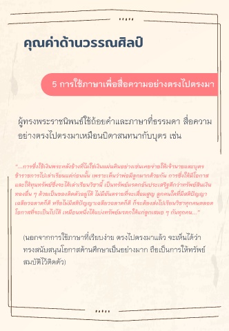 (นอกจำกกำรใช้ภำษำที่เรียบง่ำย ตรงไปตรงมำแล้ว จะเห็นได้ว่ำ