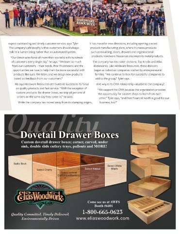 expect outstanding and timely customer service, says Tyler. it has moved in new directions, including opening a wood
