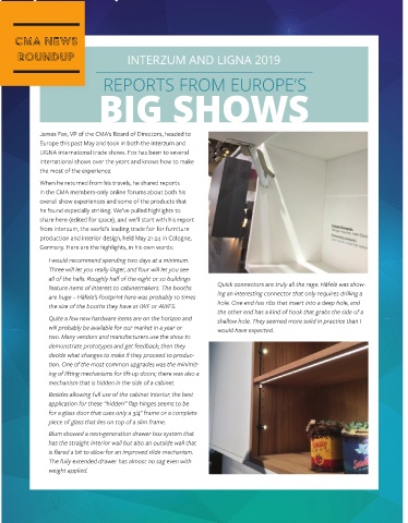 feature items of interest to cabinetmakers. The booths Quick connectors are truly all the rage. Häfele was show-