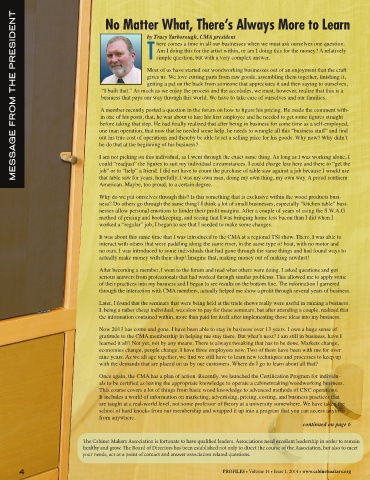 4 PROFILES • Volume 14 • Issue 1, 2014 • www.cabinetmakers.org