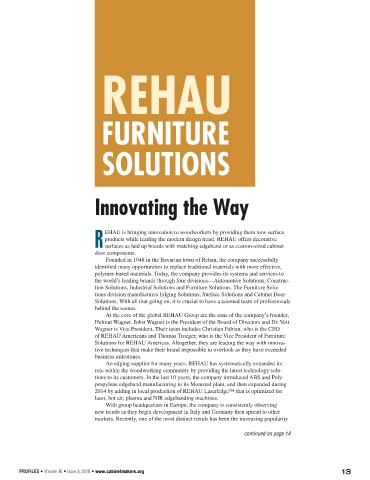 PROFILES • Volume 16 • Issue 3, 2016 • www.cabinetmakers.org 13