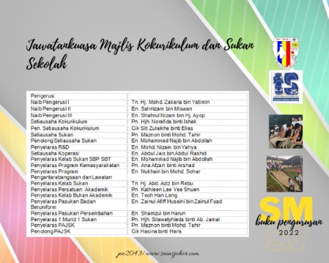 Jawatankuasa Majlis Kokurikulum dan Sukan Sekolah SM SJ buku pengurusan 2 2 0 2 jee2043/www.sainsjohor.com