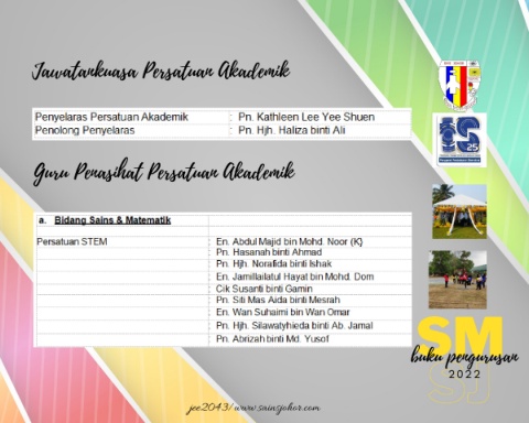 Jawatankuasa Persatuan Akademik Guru Penasihat Persatuan Akademik SM SJ buku pengurusan 2 2 0 2 jee2043/www.sainsjohor.com