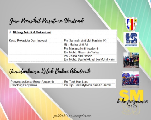 Guru Penasihat Persatuan Akademik Jawatankuasa Kelab Bukan Akademik SM SJ buku pengurusan 2 2 0 2 jee2043/www.sainsjohor.com