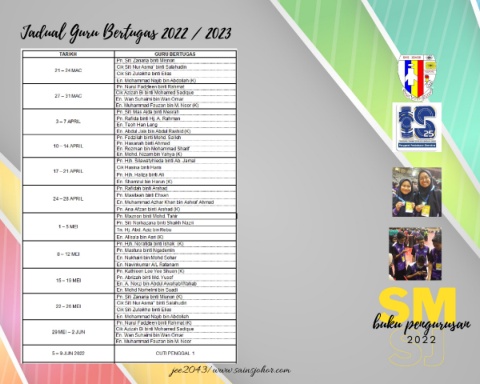 Jadual Guru Bertugas 2022 / 2023 SM SJ buku pengurusan 2 2 0 2 jee2043/www.sainsjohor.com