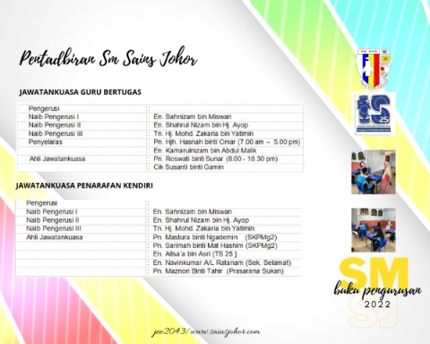 Pentadbiran Sm Sains Johor JAWATANKUASA GURU BERTUGAS JAWATANKUASA PENARAFAN KENDIRI SM SJ buku pengurusan 2 2 0 2 jee2043/www.sainsjohor.com