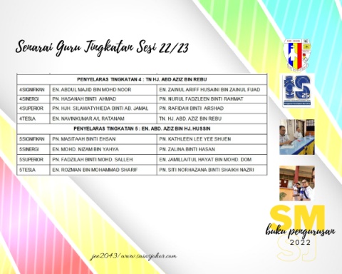 Senarai Guru Tingkatan Sesi 22/23 SM SJ buku pengurusan 2 2 0 2 jee2043/www.sainsjohor.com