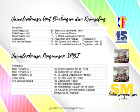 Jawatankuasa Unit Bimbingan dan Kaunseling Jawatankuasa Pengurusan SPBT SM SJ buku pengurusan 2 2 0 2 jee2043/www.sainsjohor.com