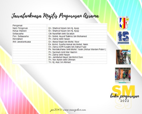 Jawatankuasa Majlis Pengurusan Asrama SM SJ buku pengurusan 2 2 0 2 jee2043/www.sainsjohor.com