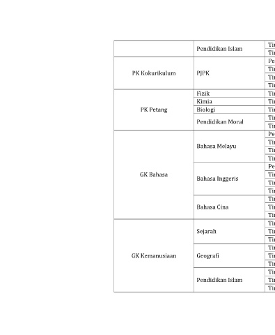 PK Kokurikulum PK Petang GK Bahasa GK Kemanusiaan