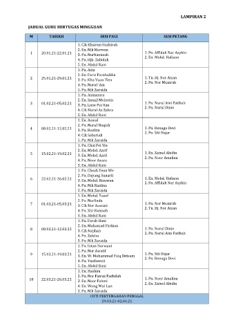 JADUAL GURU BERTUGAS MINGGUAN
