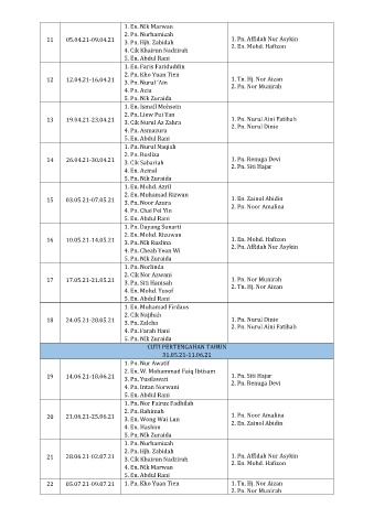 22 05.07.21-09.07.21 1. Pn. Kho Yuan Tien 1. Tn. Hj. Nor Aizan