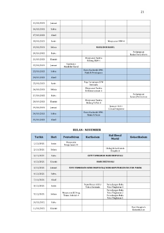 5/11/2021 Jumaat CUTI TAMBAHAN HARI DEEPAVALI/HARI KEPUTERAAN SULTAN PERAK