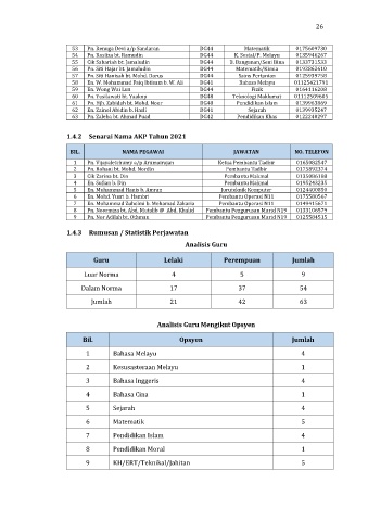 2 Pn. Rohani bt. Mohd. Nordin Pembantu Tadbir 0175892374