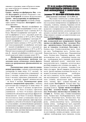 Изменение № 14. Дата введения в дей- пельмени «Гурман»; пельмени «Мелкие»; пель- званиями. ростбиф (говядина или телятина для жарки); го-