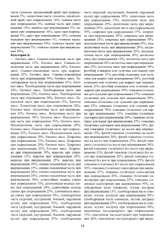 ные из говядины (телятины). Категория А: (телятины) на кости при шприцевании 10%; фи- шприцевании 25%; спинно-поясничная часть при при шприцевании 20%; говядина (телятина) од-