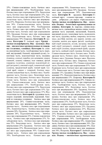 25%. Спинно-поясничная часть; блочное мясо шприцевании 30%. Лопаточная часть; блочное из конины. Категория А: спинно-поясничная шпигованное; шейка свиная; котлетное мясо;