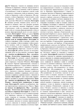 шприцевании 30%. Окорок; блочное мясо при паточная часть баранья; корейка свиная обрезная; чесноком. Категория Г: бекон для гриля. Группа ринованный (барбекю) в уксусе; шашлык «Геор-