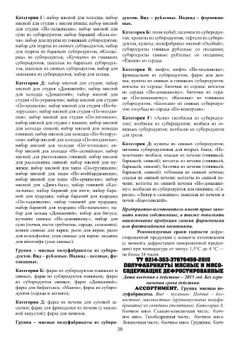шения; сердце баранье по-строгановски; субпро- Категория В: набор бараний для калле-баш-аяк; Категория Д: фарш из печени для суповой за- брикаты) из говядины (телятины). Категория А: