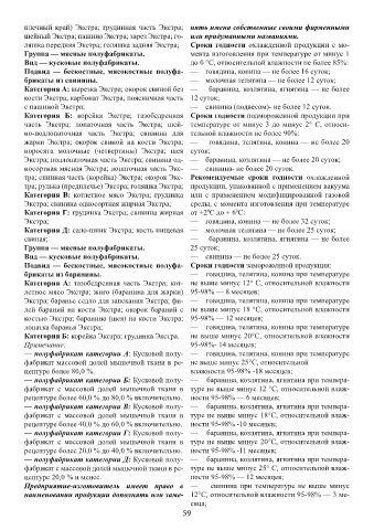 Категория Г: грудинка Экстра; свинина жирная от +2 С до + 6 С: куриные с морковью и луком; зразы из индейки с