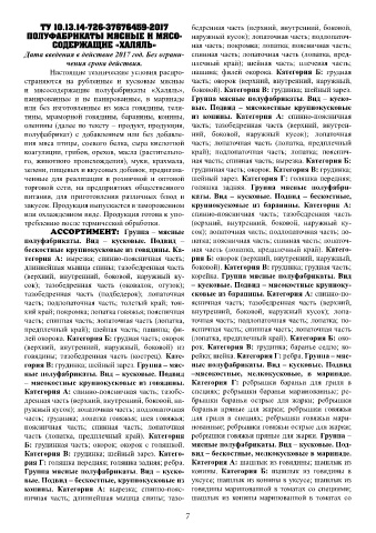 ТУ 10.13.14-726-37676459-2017 бедренная часть (верхний, внутренний, боковой, специями; шашлык из баранины маринованный ты из баранины; котлет из говядины со сладким
