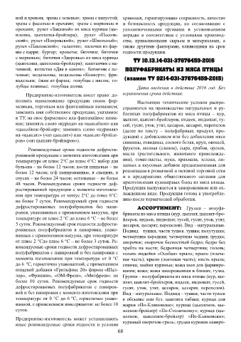 ванная яблоками; Тушки, части тушек перепелов, тесная» из мяса курицы (цыпленка, цыплен- Рекомендуемые сроки годности дефрости- фруктов, молока (сливок), сыра, грибов, орехов,