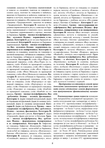 конины. Категория А: вырезка; спинно-пояс- говядины маринованной в томатах со специями; Категория В: шницель из говядины; шницель продукции с момента изготовления при темпе-