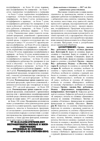 лее 6 суток. Рекомендуемые сроки годности за- оленины с черносливом; колбаски из оленины грибами; зразы из оленины рубленые с чесноком (взамен 9214-025-37676459-2016)