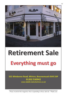 43 531 Wimborne Road, Winton, Bournemouth BH9 2AP 01202 530942 www.labelle-ladiesfashions.co.uk Please mention this magazine when responding to these adverts - Thank you LE April 2016.indd 43 23/03/2016 14:53:56