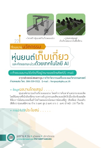 22 • โครงสร้างหุ่นยนต์เก็บเกี่ยวผลมะม่วง เก็บเกี่ยวผลมะม่วงในพื้นที่สวน