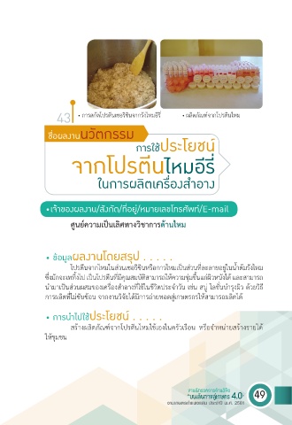 43 • การสกัดโปรตีนเซอริซินจากรังไหมอีรี่ • ผลิตภัณฑ์จากโปรตีนไหม