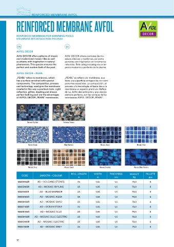 of AVFOL DECOR „PEARL“ membranes. membranas AVFOL DECOR „PEARL“.