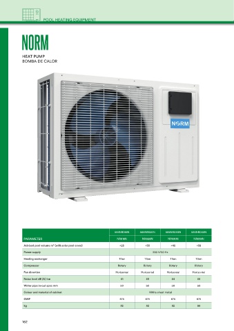 Advised pool volume m³ (with solar pool cover) <25 <35 <45 <58