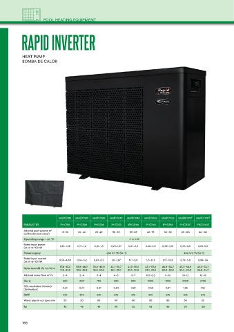 Advised pool volume m³ 15–30 20–40 25–45 30–55 35–65 40–75 50–95 65–120 90–160